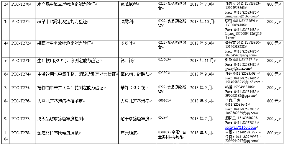 辽宁出入境检验检疫局检验检疫技术中心2018年能力验证计划(认可范围内)